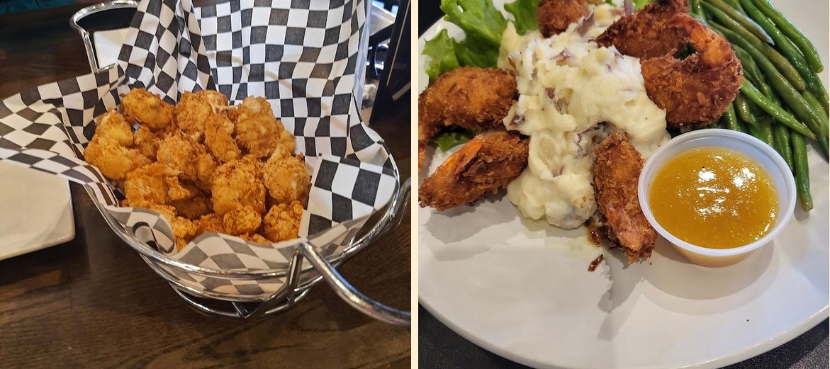Try the Southern Fried Catfish and Smoked Pulled Pork Mac N Cheese. Their Coconut Shrimp shines too. Each dish offers a taste of local flavor.